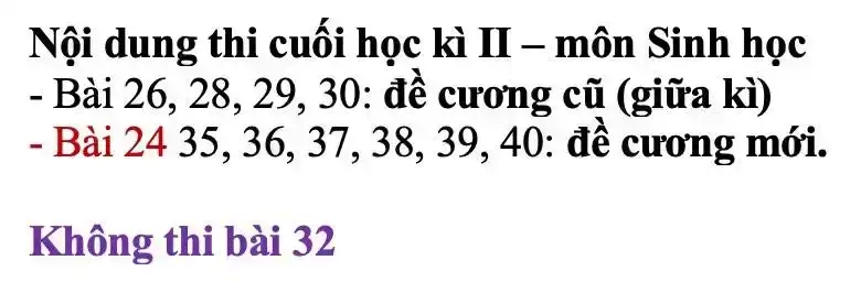 - Sinh: Thêm một đống giữa kỳ 2 vì cuối kỳ 2 có giữa kỳ 2