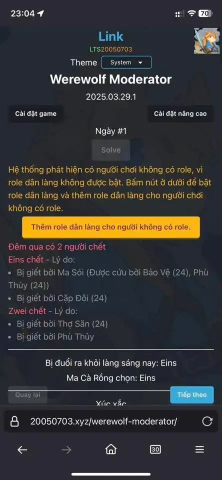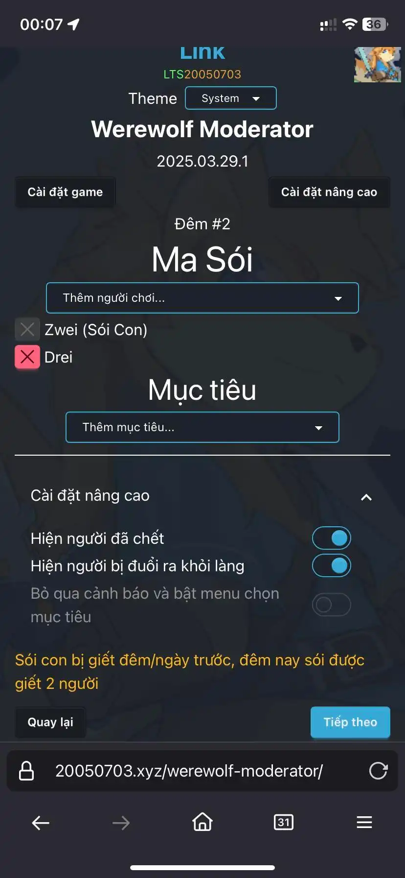 Added “alternates” (biến thể) for moderators that don’t like the app’s default ruleset and prefer sticking to the original Ultimate Werewolf ruleset.